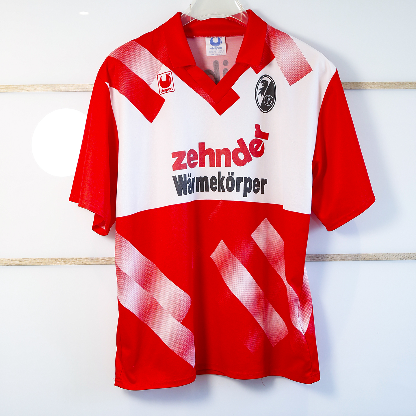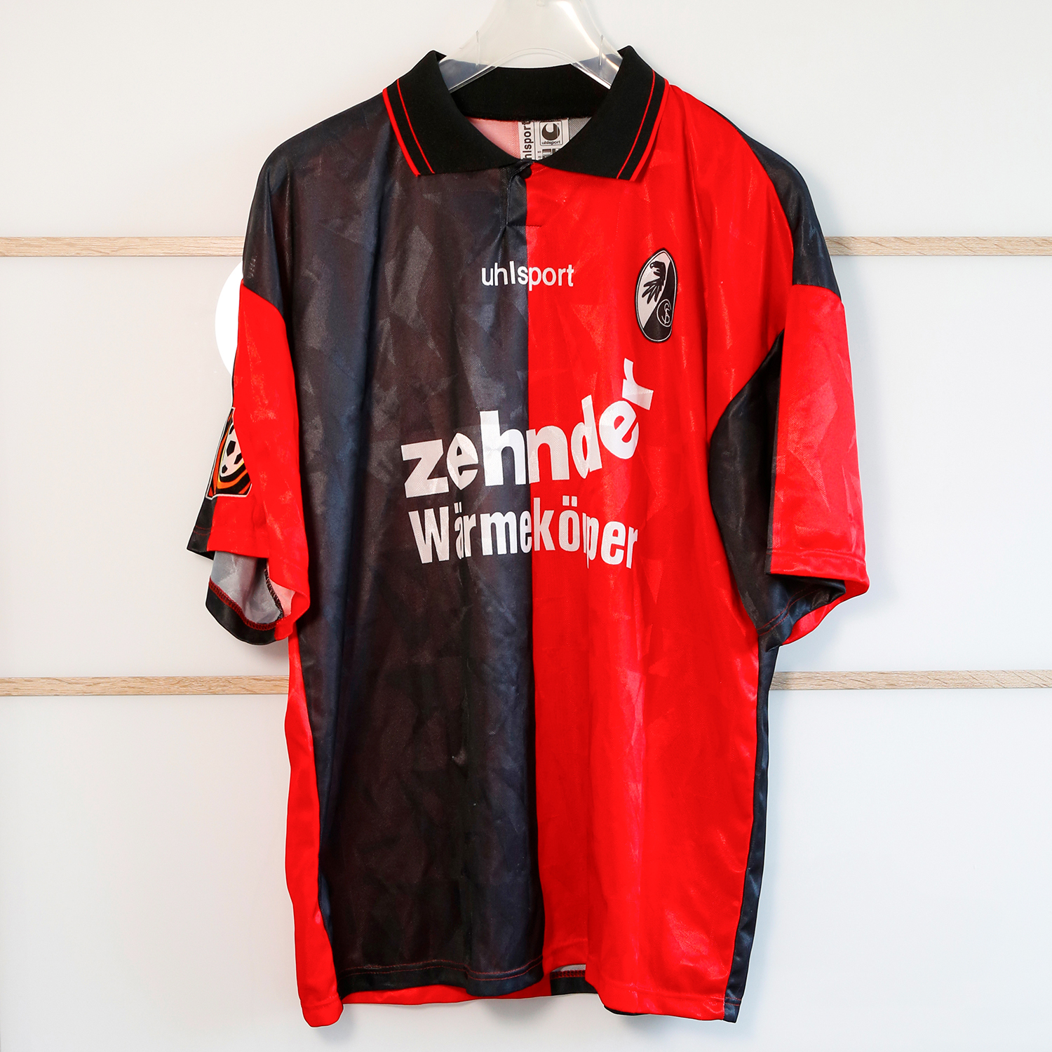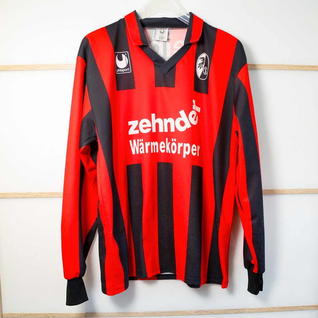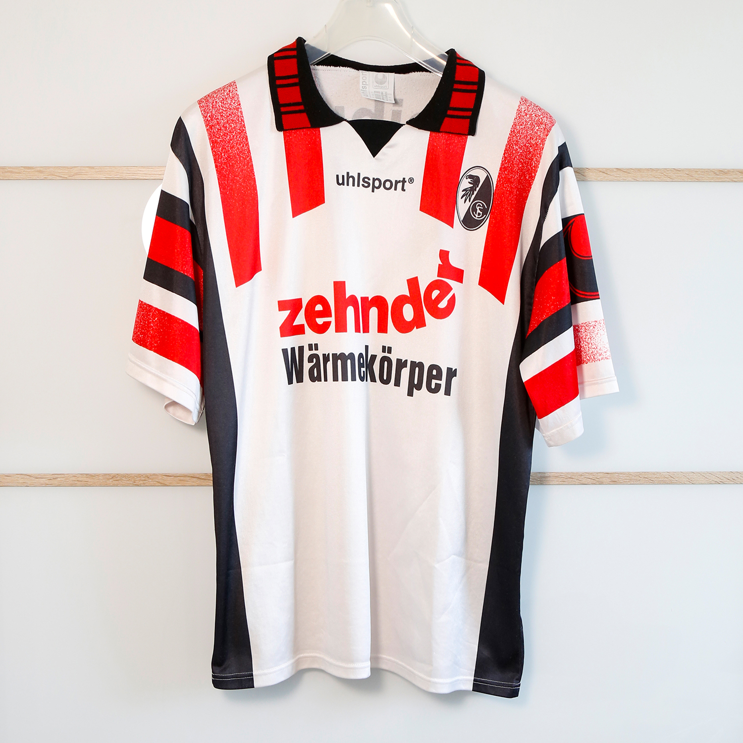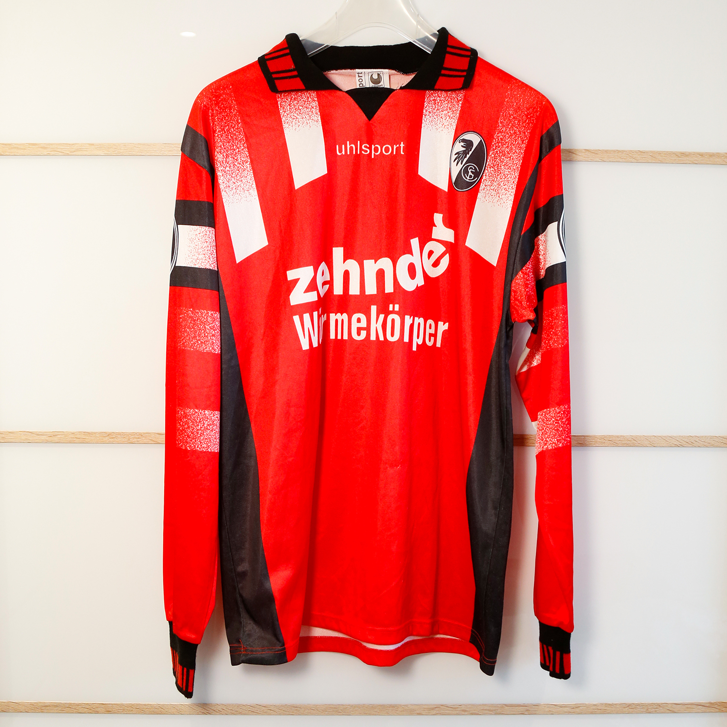 In der zweiten Liga Anfang der 90er-Jahre spielte man noch in Trikots von Puma und Patrick. Ab dem ersten Bundesligajahr begann dann die Zeit der tollen Uhlsport-Trikots. Beim Sportclub ging es damals ziemlich wild zu, was die Trikots anging – es wurden viele Varianten getragen, manchmal sogar ohne Vereinswappen.