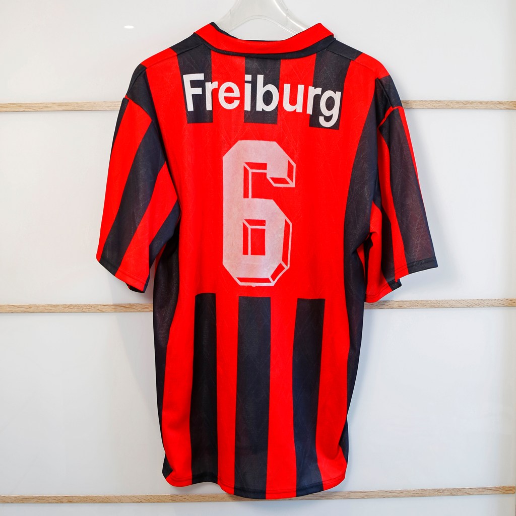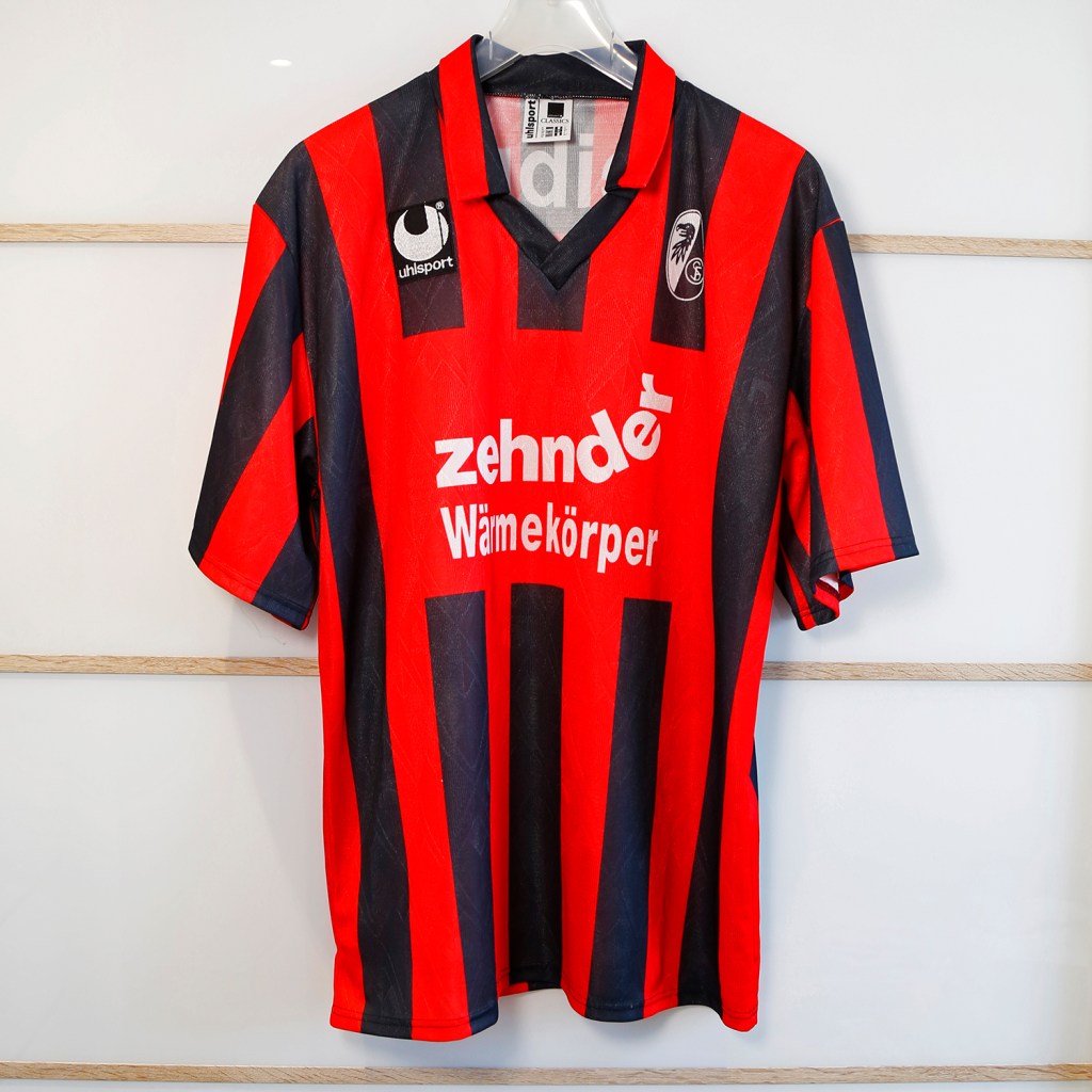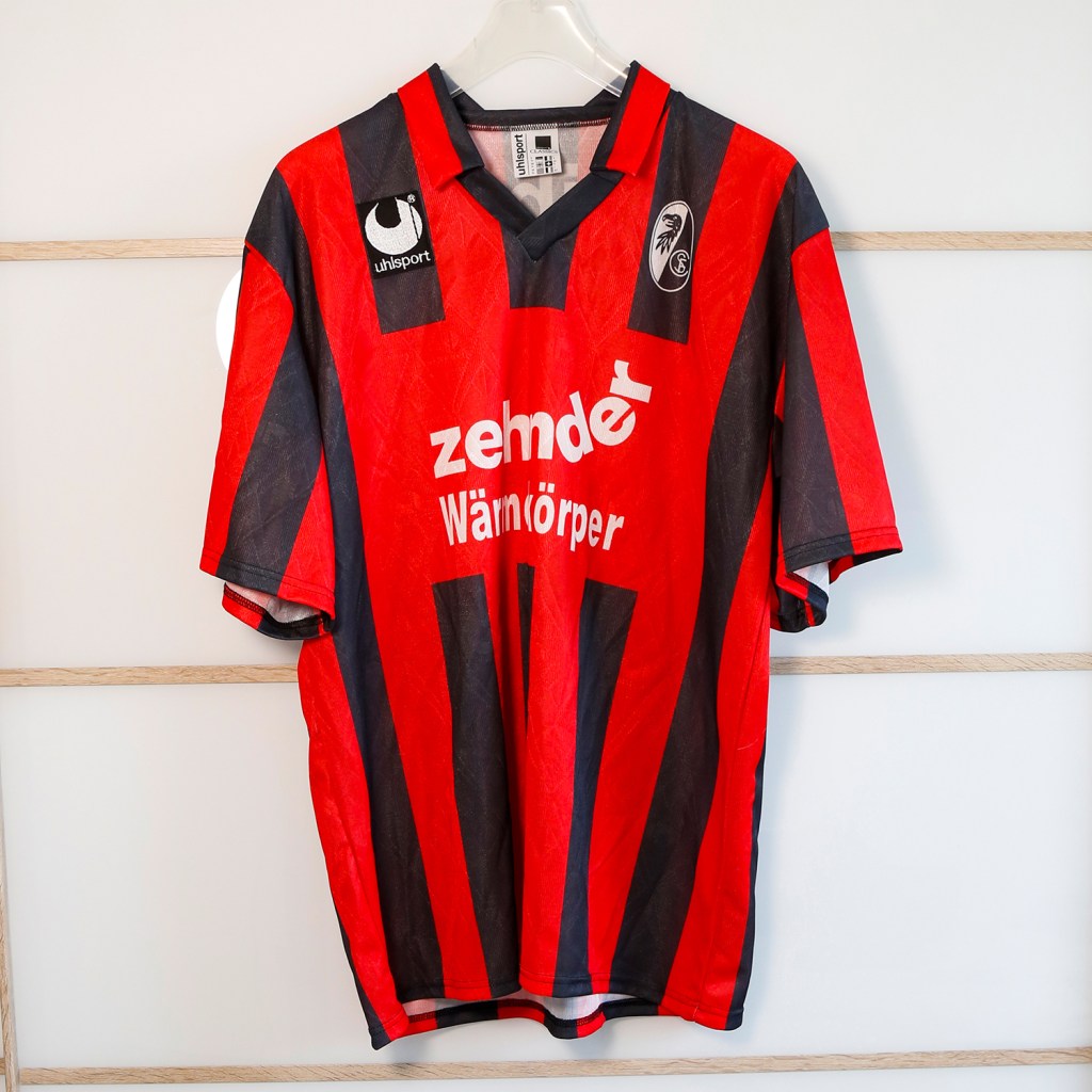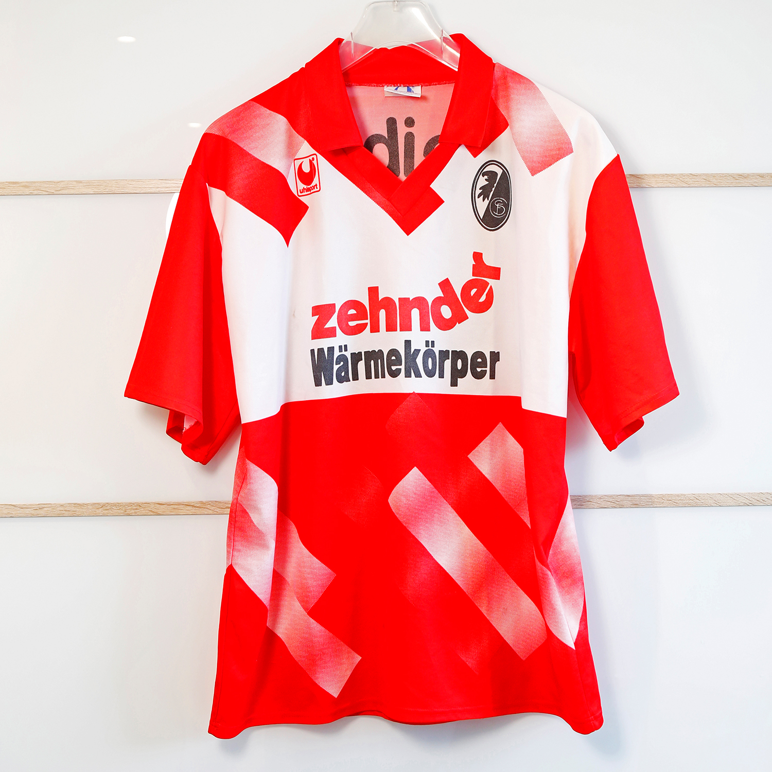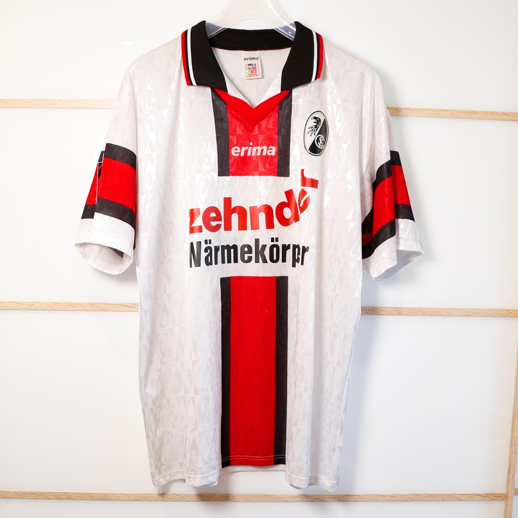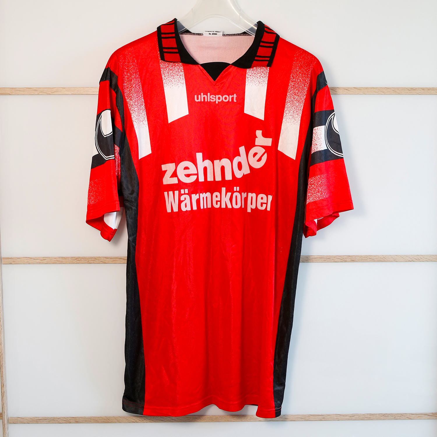In der zweiten Liga Anfang der 90er-Jahre spielte man noch in Trikots von Puma und Patrick. Ab dem ersten Bundesligajahr begann dann die Zeit der tollen Uhlsport-Trikots. Beim Sportclub ging es damals ziemlich wild zu, was die Trikots anging – es wurden viele Varianten getragen, manchmal sogar ohne Vereinswappen.