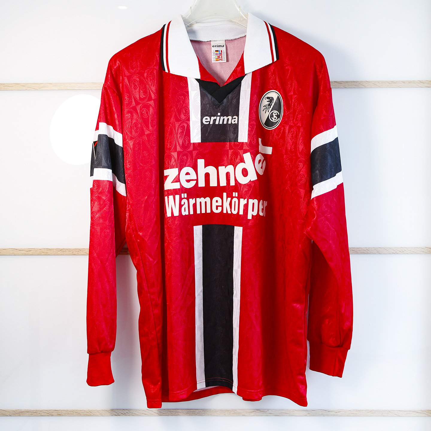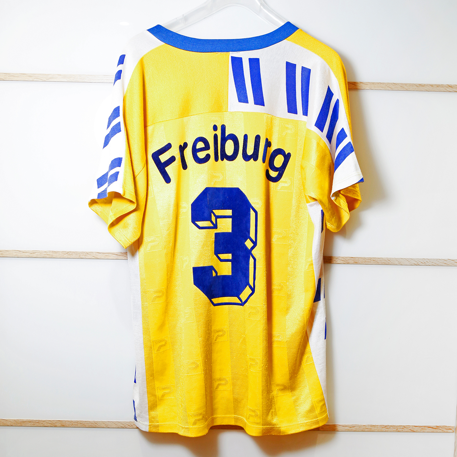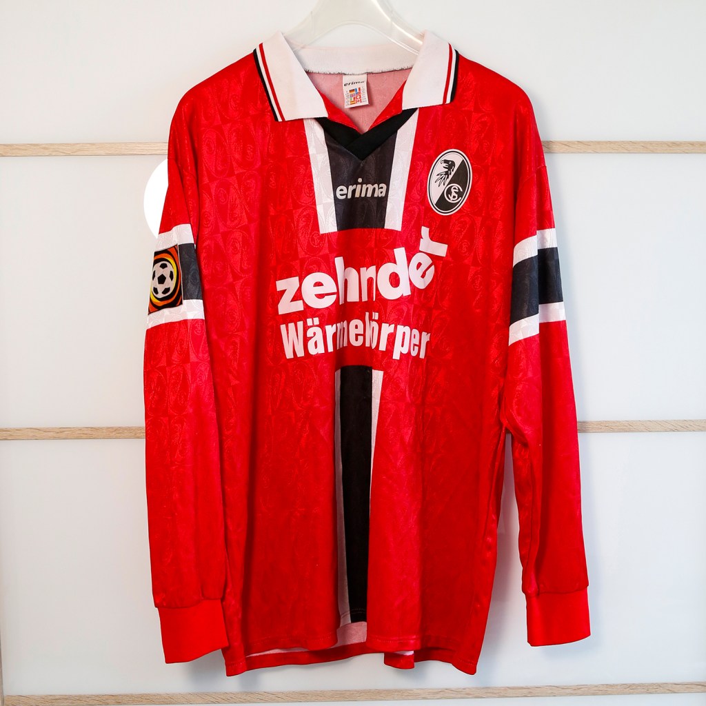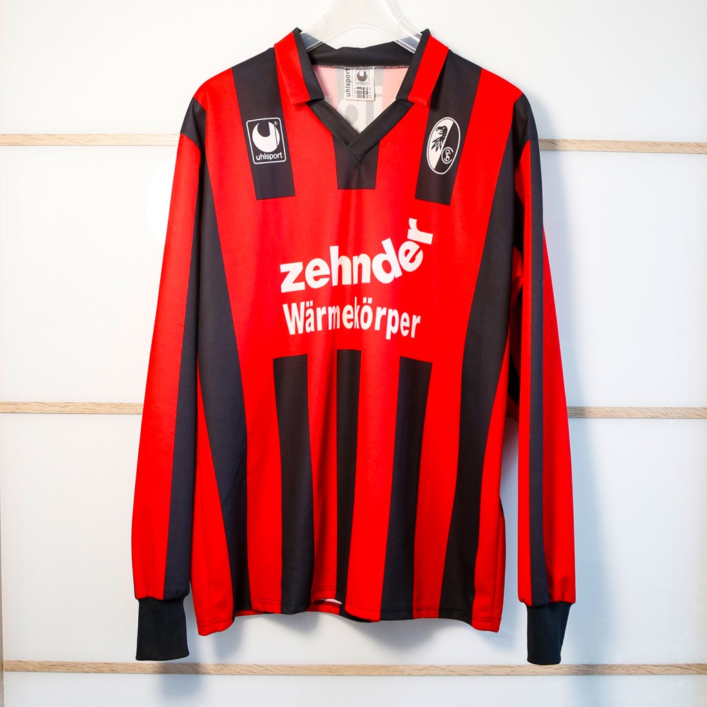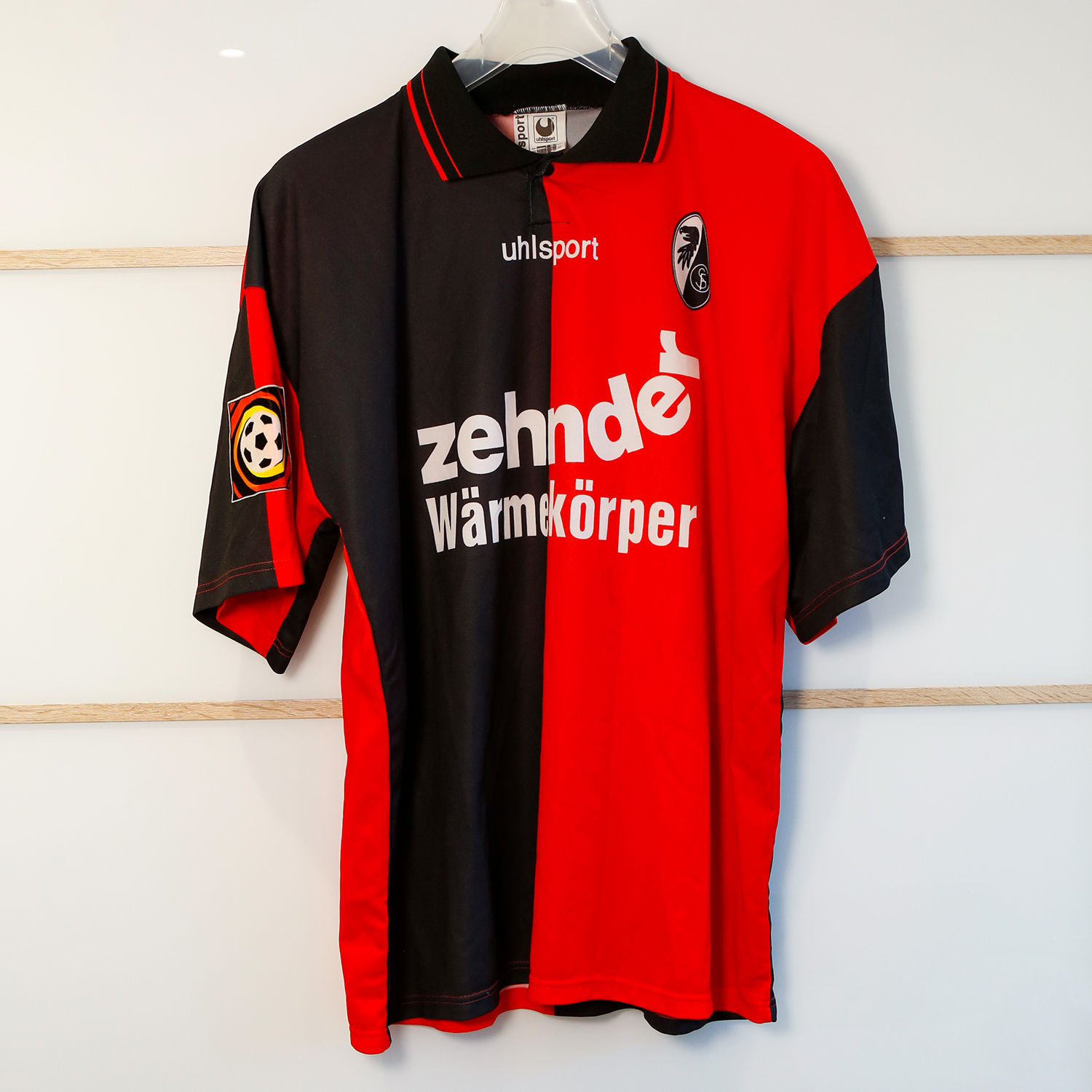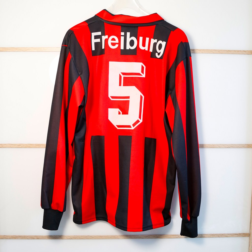In der zweiten Liga Anfang der 90er-Jahre spielte man noch in Trikots von Puma und Patrick. Ab dem ersten Bundesligajahr begann dann die Zeit der tollen Uhlsport-Trikots. Beim Sportclub ging es damals ziemlich wild zu, was die Trikots anging – es wurden viele Varianten getragen, manchmal sogar ohne Vereinswappen.