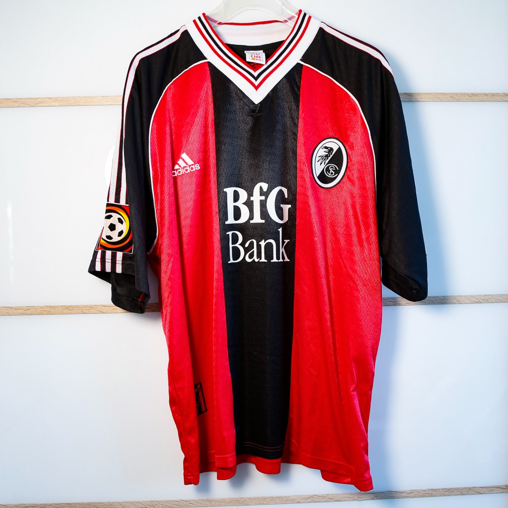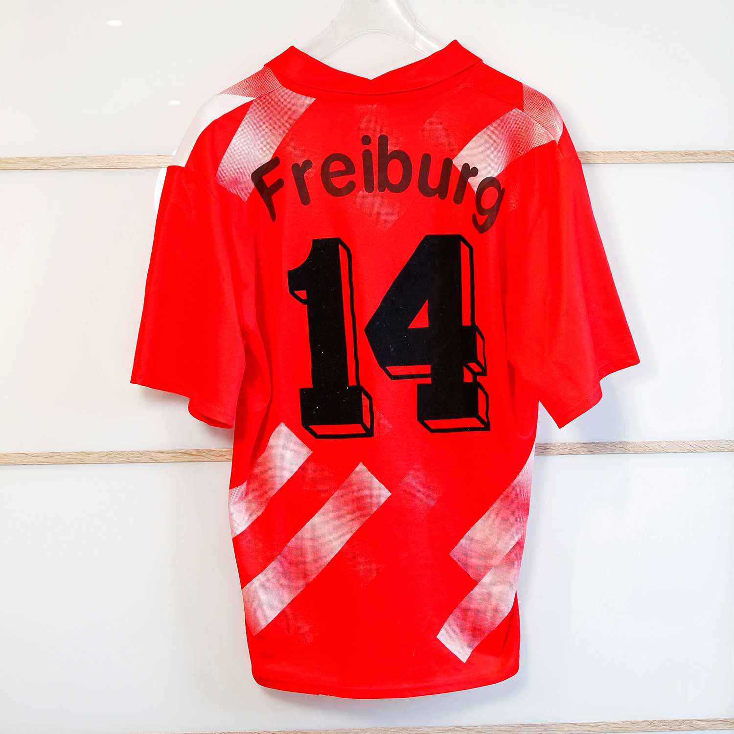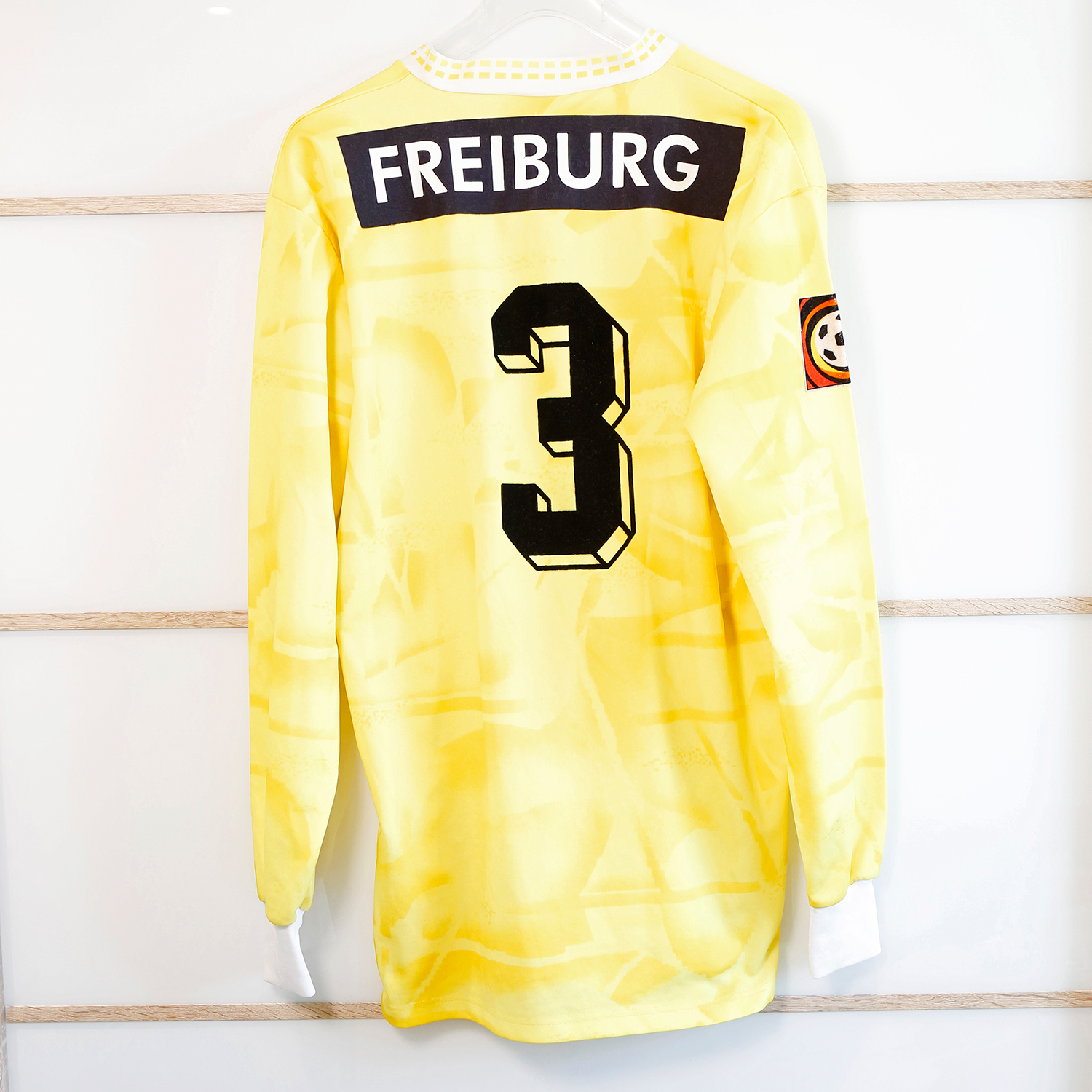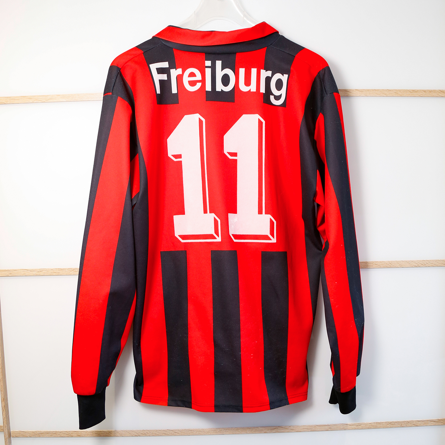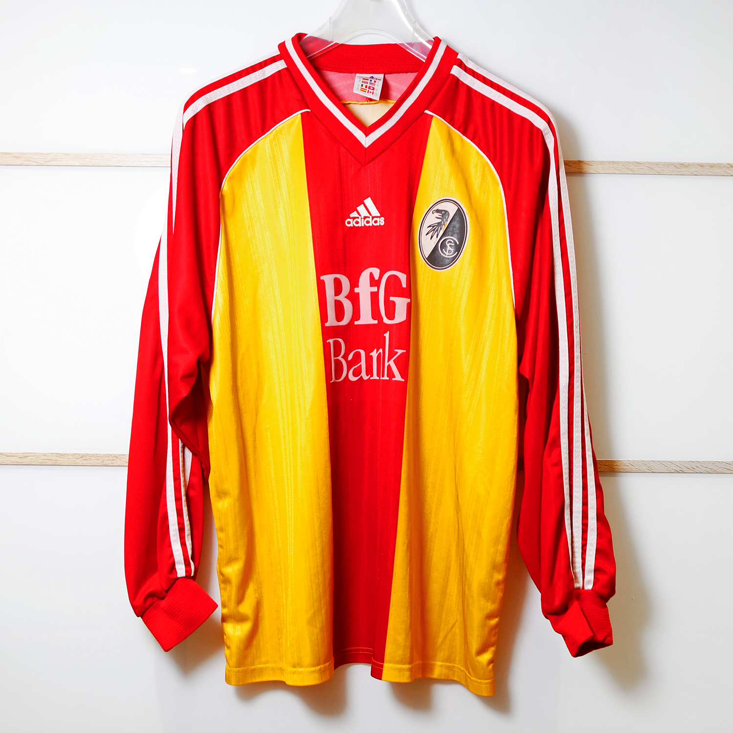 In der zweiten Liga Anfang der 90er-Jahre spielte man noch in Trikots von Puma und Patrick. Ab dem ersten Bundesligajahr begann dann die Zeit der tollen Uhlsport-Trikots. Beim Sportclub ging es damals ziemlich wild zu, was die Trikots anging – es wurden viele Varianten getragen, manchmal sogar ohne Vereinswappen.