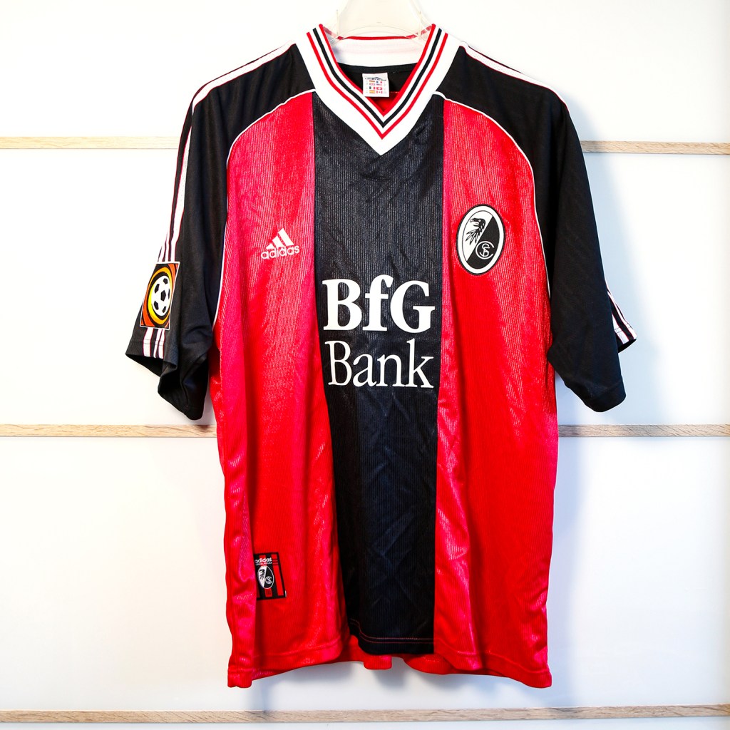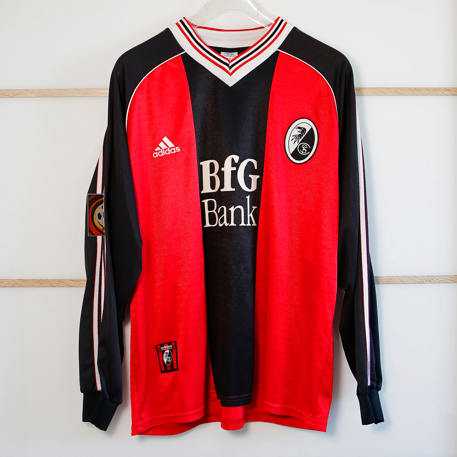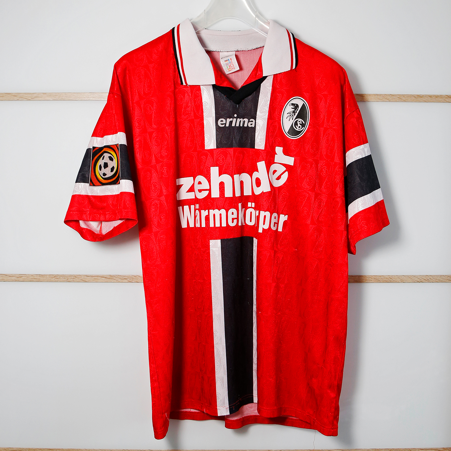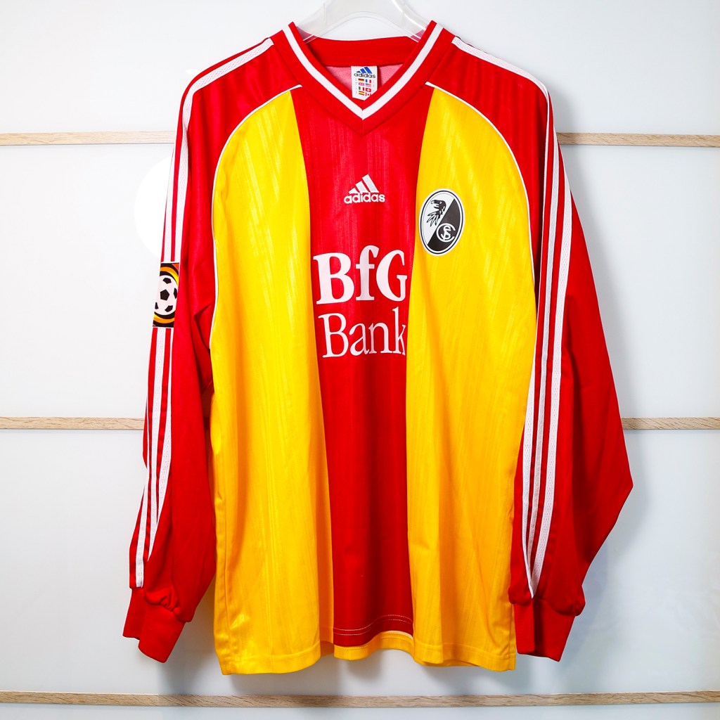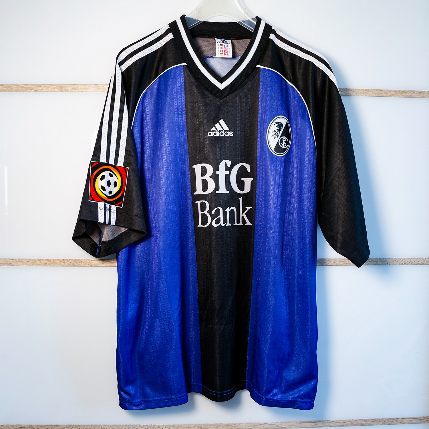 In der zweiten Liga Anfang der 90er-Jahre spielte man noch in Trikots von Puma und Patrick. Ab dem ersten Bundesligajahr begann dann die Zeit der tollen Uhlsport-Trikots. Beim Sportclub ging es damals ziemlich wild zu, was die Trikots anging – es wurden viele Varianten getragen, manchmal sogar ohne Vereinswappen.