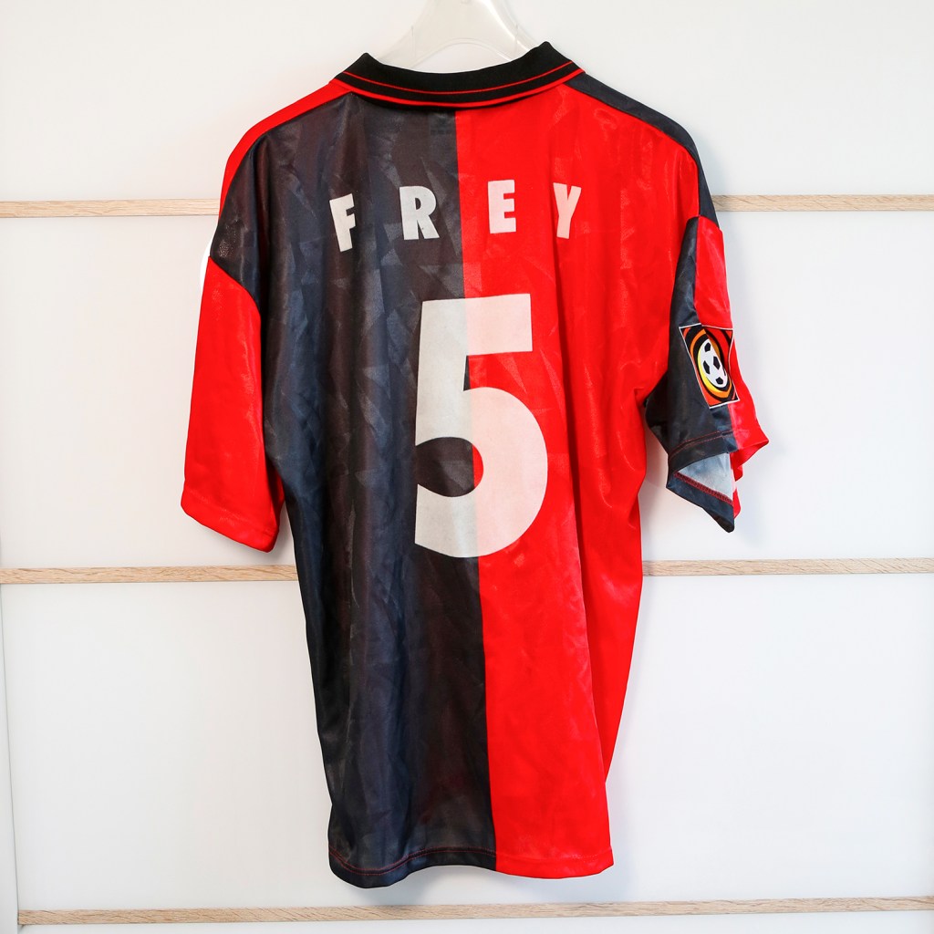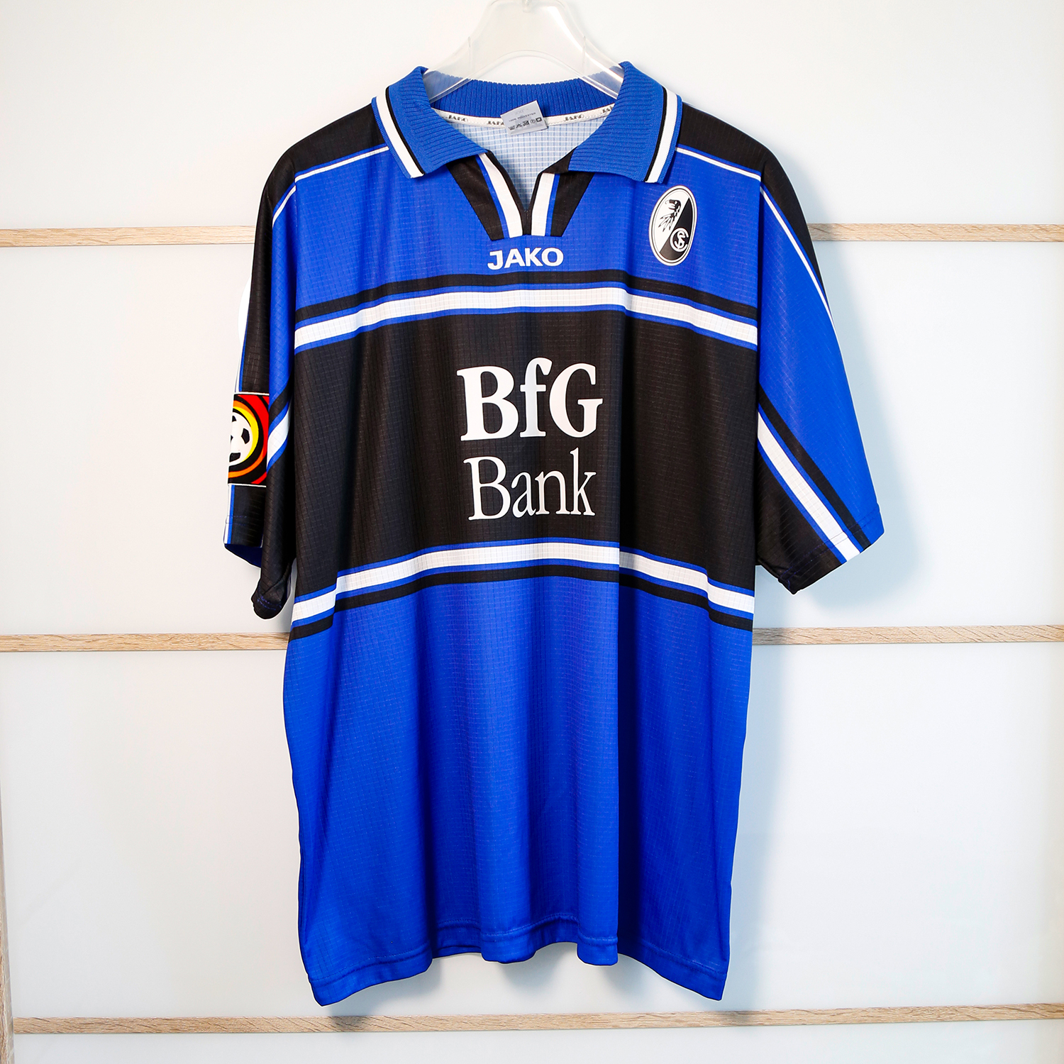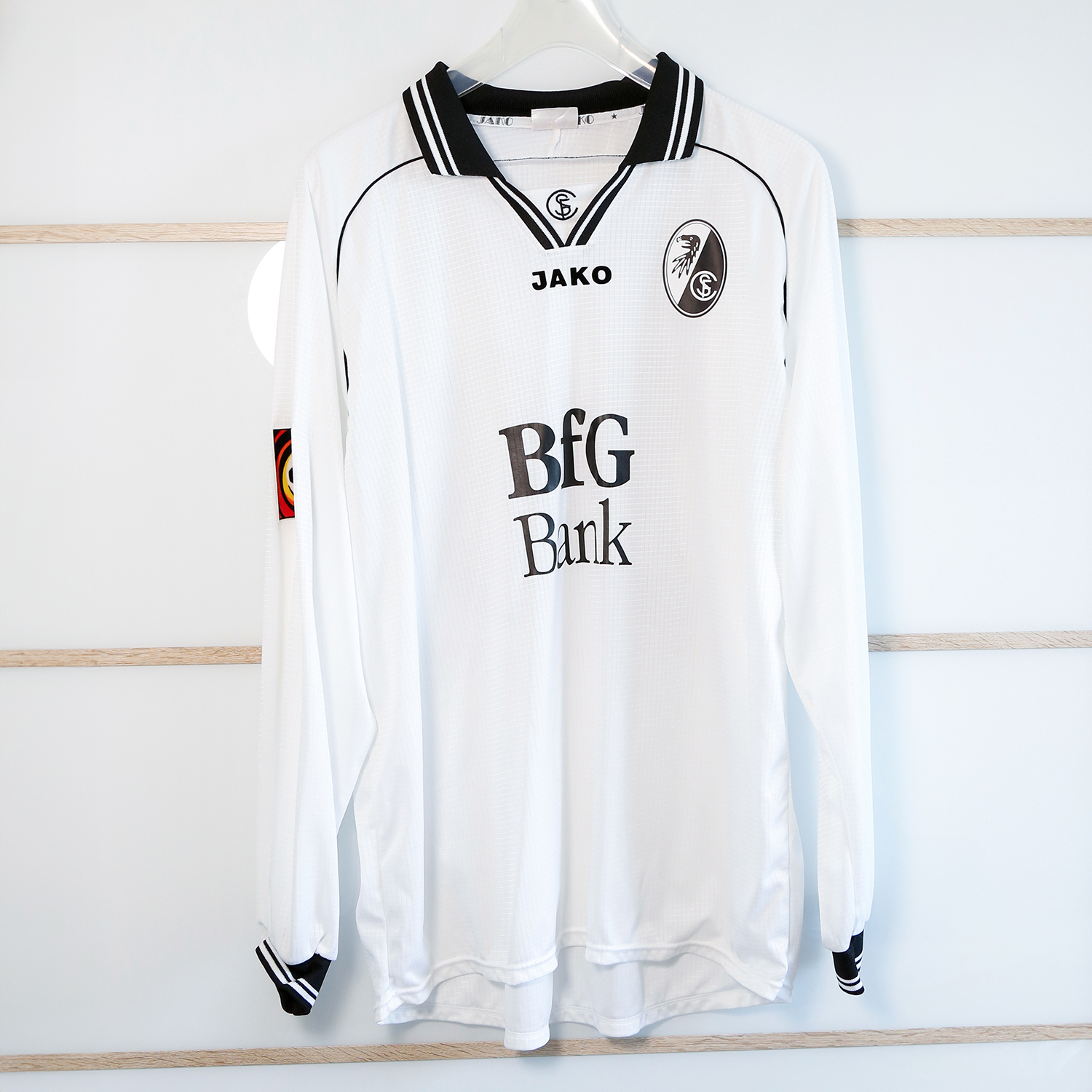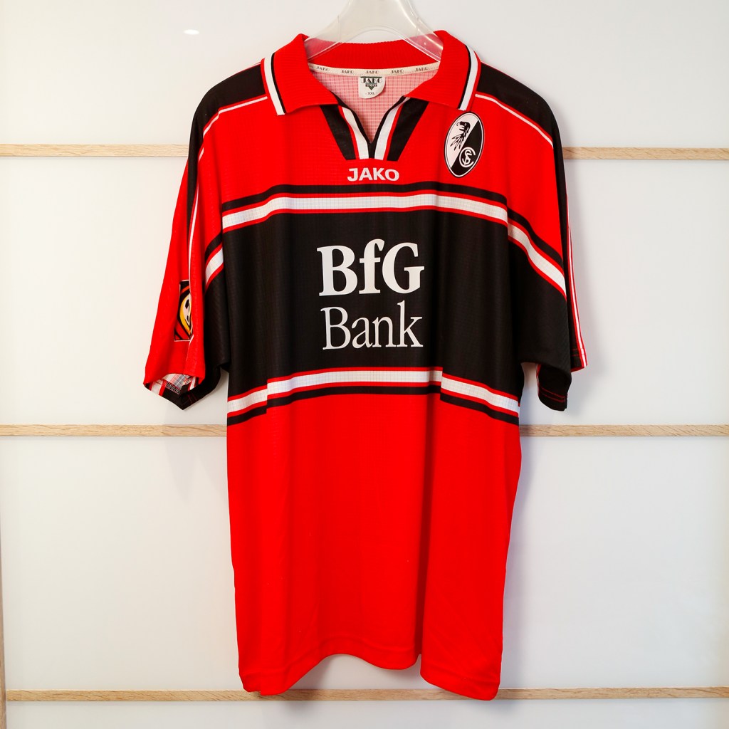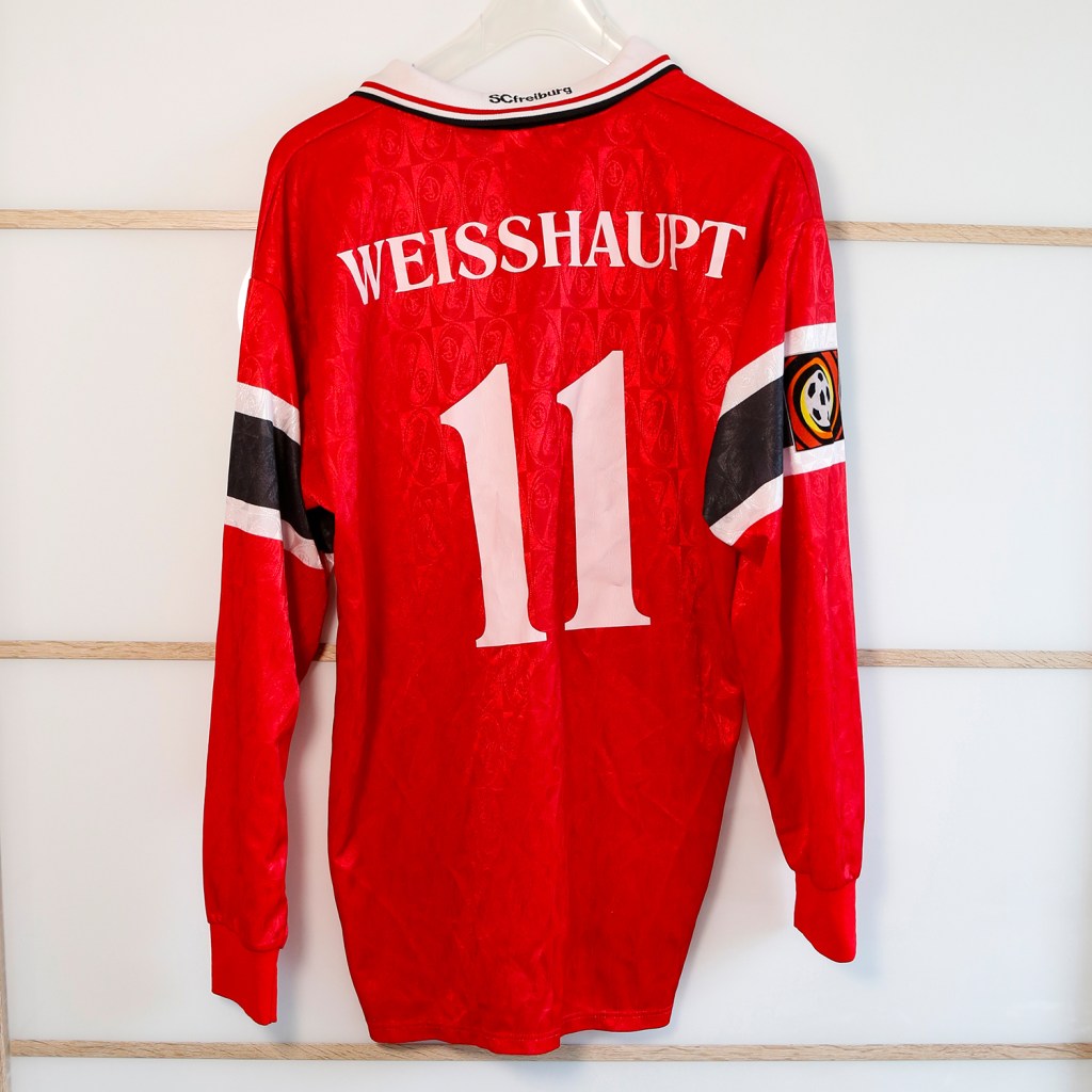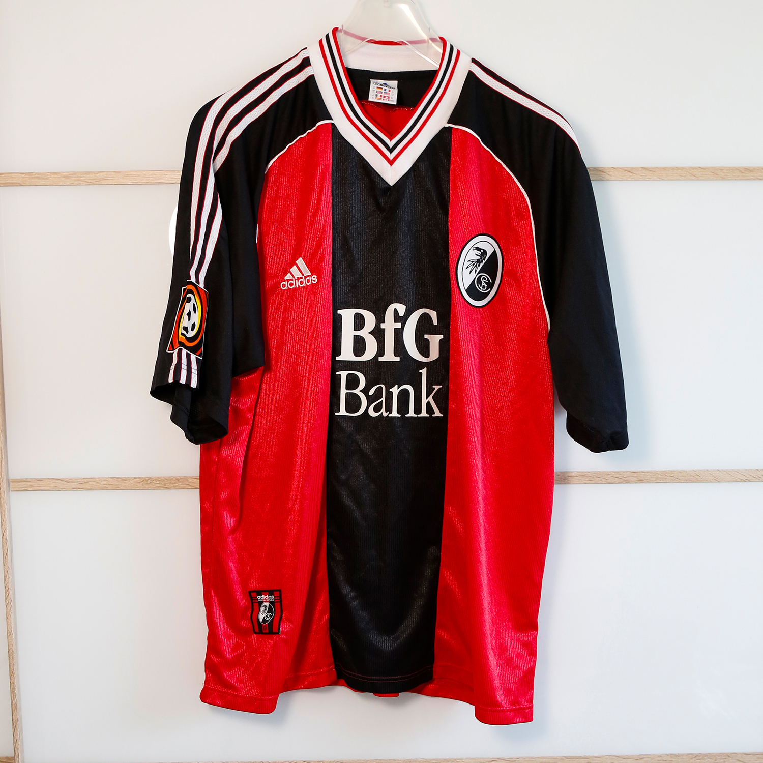 In der zweiten Liga Anfang der 90er-Jahre spielte man noch in Trikots von Puma und Patrick. Ab dem ersten Bundesligajahr begann dann die Zeit der tollen Uhlsport-Trikots. Beim Sportclub ging es damals ziemlich wild zu, was die Trikots anging – es wurden viele Varianten getragen, manchmal sogar ohne Vereinswappen.